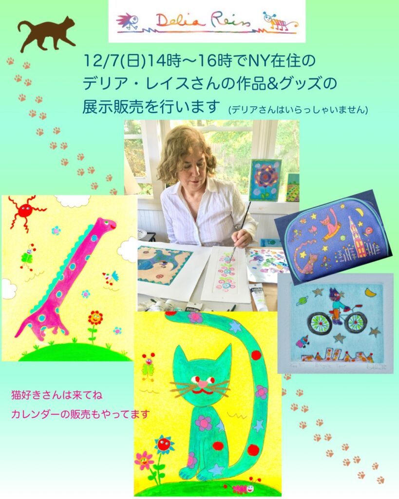 12/7(日)14時~16時でデリア・レイスさんの作品&グッズの展示販売を行います。お気軽にお立ち寄りください。(本人はいらっしゃいません)